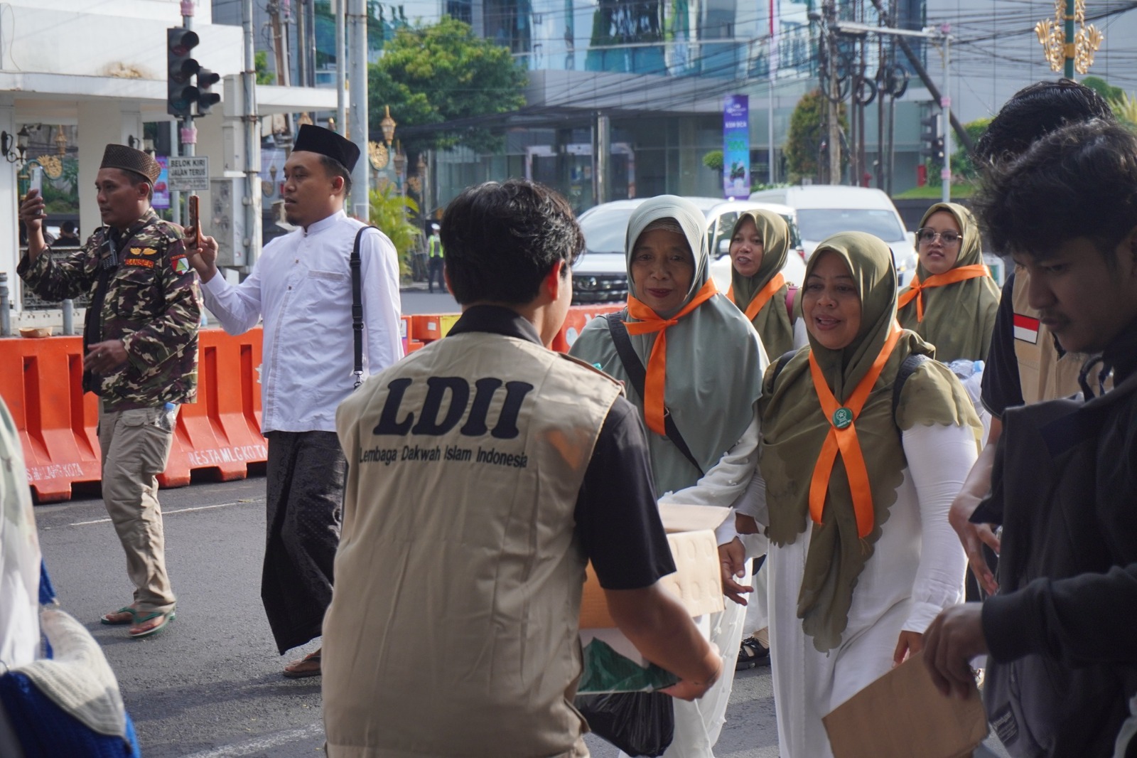 MALANG — DPD LDII Kota Malang membagikan 2.400 botol air mineral dalam peringatan Hari Lahir (Harlah) Satu Abad Nahdlatul Ulama (NU) yang dilaksanakan di Stadion Gayajana Kota Malang. Sekitar 15 relawan LDII ikut membantu pembagian air mineral tersebut, Minggu (8/2/2026). Pembagian air mineral gratis ini disebar di beberapa titik mulai dari area depan Hotel Tugu hingga sepanjang Jalan Semeru, Kota Malang mulai pukul 06.30 hingga 09.00 WIB.