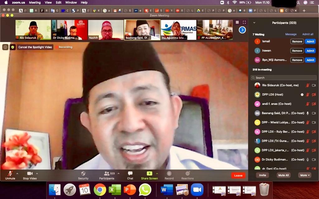 Hal itu mendorong DPP LDII menggelar webinar pada 10 Agustus 2020, dengan tema “Menjadi Pondok Pesantren Sehat pada Era Pandemi Covid-19”. Acara ini menghadirkan Kasubdit Pendidikan Pesantren Kementerian Agama Dr. H. Basnang Said. S.AG, M.Ag, Kepala Bidang Pencegahan, Mitigasi, dan Kesiapsiagaan, Pusat Krisis Kesehatan, Kementerian Kesehatan, Dr. Ina Agustina Isturini, MKM. Keduanya mewakili lembaga pemerintah.