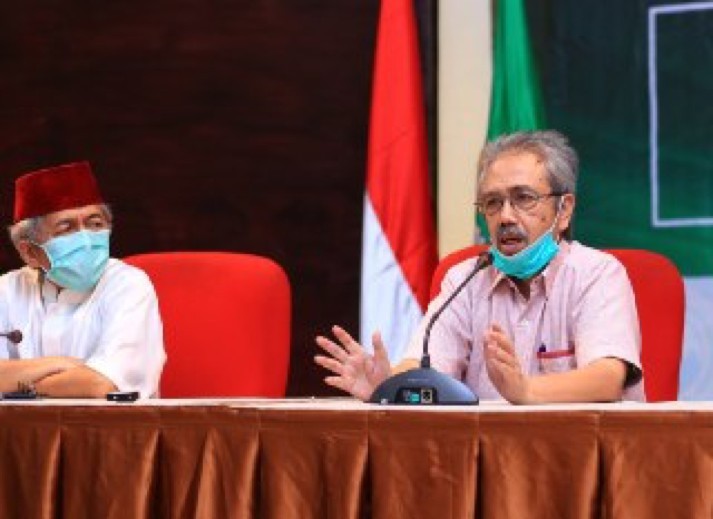 Ketua DPP LDII Prasetyo Sunaryo menyampaikan paparan tentang ketahanan pangan nasional dalam konferensi pers di Kantor DPP LDII, Jakarta, Rabu (20/5/2020). Foto: LINES