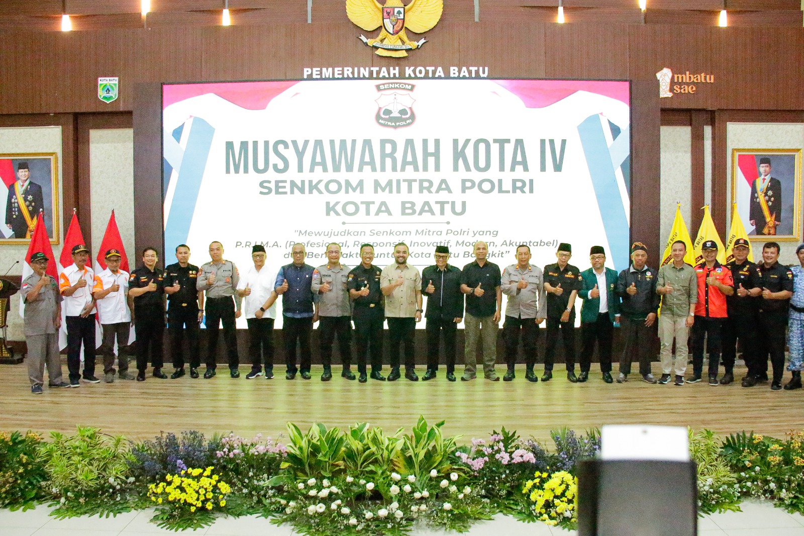 Muskot IV Senkom Mitra Polri Kota Batu mengusung tema “Mewujudkan Senkom Mitra Polri yang PRIMA (Profesional, Responsif, Inovatif, Modern, Akuntabel) dan Berkarakter untuk Kota Batu Bangkit”. Muskot IV dibuka oleh Wakil Wali Kota Batu Heli Suyanto, dan dihadiri oleh Kasat Binmas Polres Batu beserta jajarannya, Dandim 0818 Kota Batu, Bakesbangpol, BPBD, serta pengurus Senkom Mitra Polri Jawa Timur dan sejumlah mitra strategis, seperti LDII, FORSGI, dan Persinas ASAD di Kota Batu.