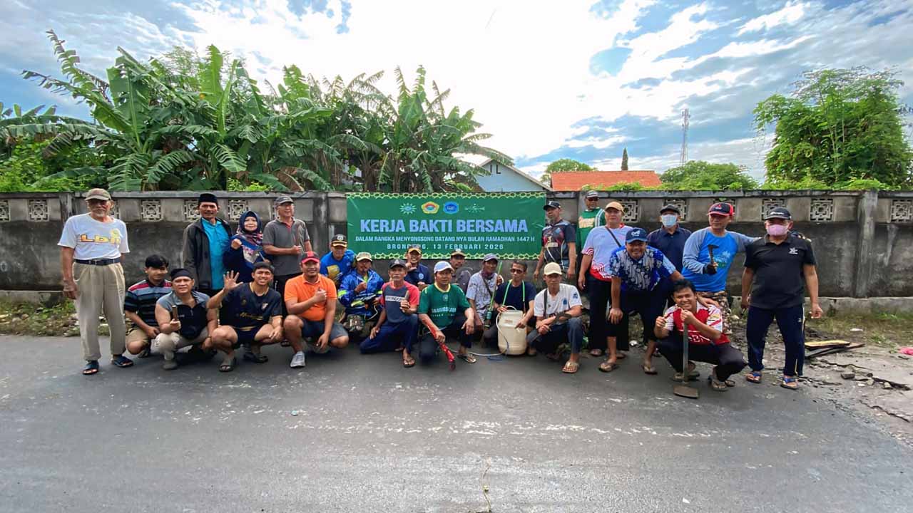 LAMONGAN — Menjelang Ramadan 1447 Hijriah, PAC LDII Brondong bersama Pemerintah Kelurahan Brondong menggelar kerja bakti membersihkan lingkungan, Jumat (13/2). Kegiatan difokuskan di sepanjang Jalan Makam Bahagia, Kelurahan Brondong, Kecamatan Brondong, Lamongan.