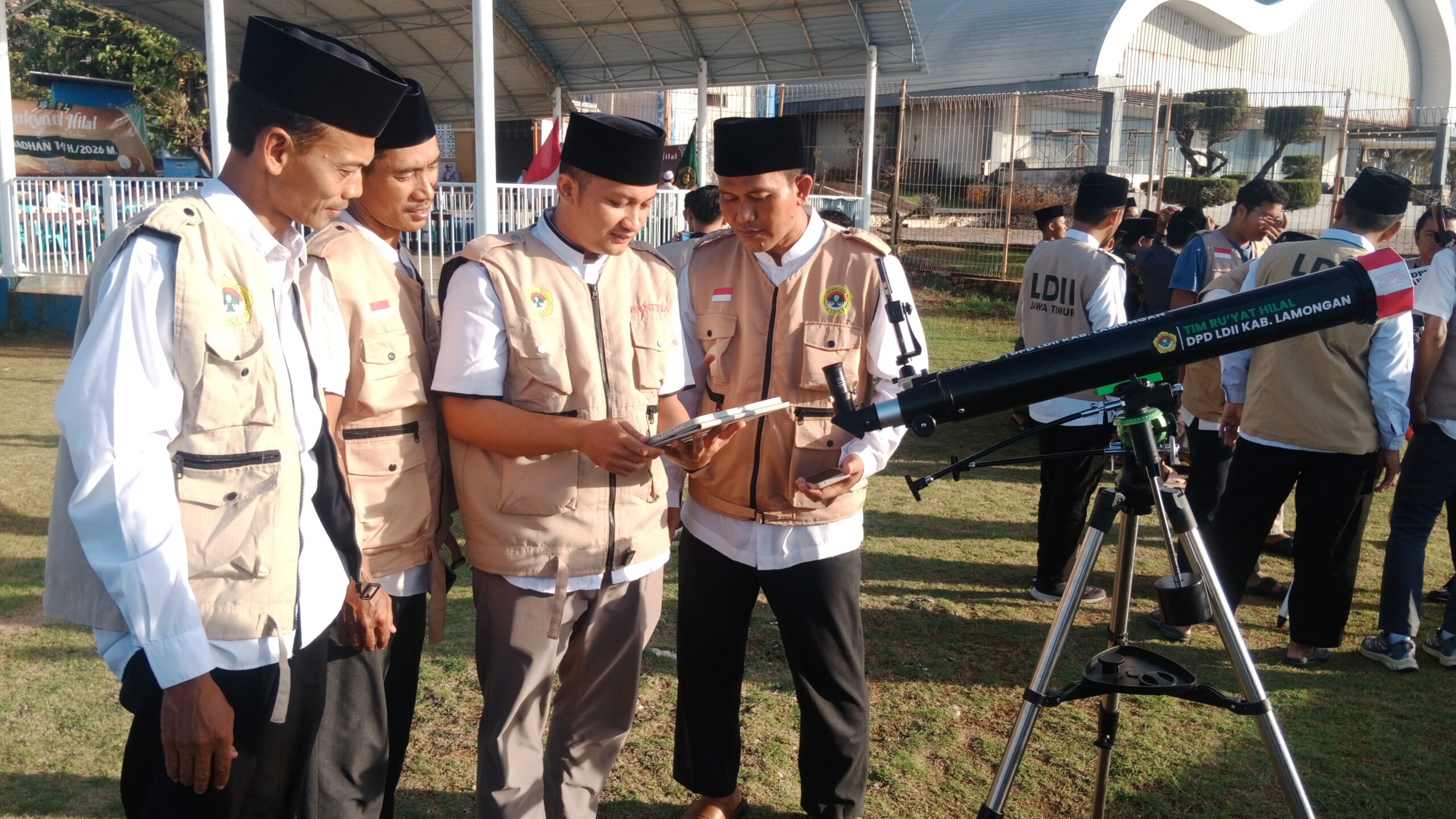 LAMONGAN — Tim Rukyatul Hilal DPD LDII Lamongan mengikuti pemantauan hilal penentuan awal 1 Ramadan 1447 Hijriah di Markaz Tanjung Kodok, Lamongan, Jawa Timur, Selasa (17/2). Kegiatan tersebut merupakan agenda rutin tahunan Kantor Kementerian Agama (Kemenag) menjelang bulan suci Ramadan. Berbagai unsur organisasi kemasyarakatan Islam dan instansi terkait ikut terlibat.