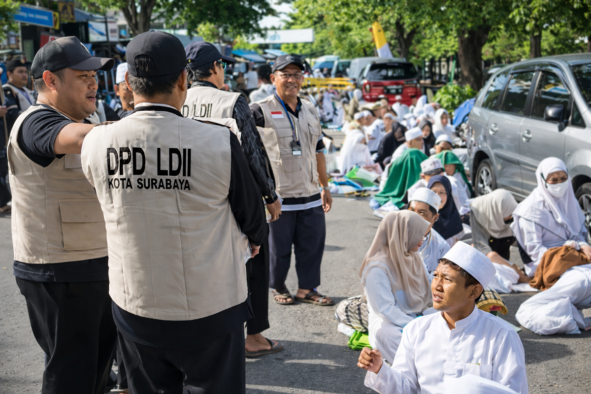 “Relawan kami bertugas membagikan air minum, menyiapkan kamar mandi, serta membantu pengaturan parkir dan arus jamaah. Semua kegiatan ini dilakukan untuk mendukung kelancaran acara dan memastikan jamaah dapat mengikuti dzikir dan doa dengan nyaman,” kata Ketua PC LDII Kenjeran, Edi Raharja.
