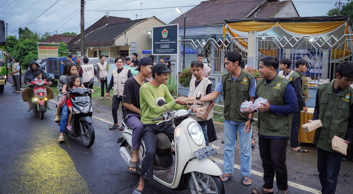 BANYUWANGI — Sebanyak 400 paket takjil yang dibagikan Pemuda LDII Banyuwangi di ruas Srono–Muncar, Selasa (24/2/2026), habis dalam hitungan menit. Aksi berbagi itu menjadi pembuka rangkaian kegiatan sosial dan keagamaan Ramadhan 1447 Hijriah yang juga dihadiri Bupati Banyuwangi Ipuk Fiestiandani dalam Safari Ramadhan di Masjid Al-Markhamah, Desa Kebaman.