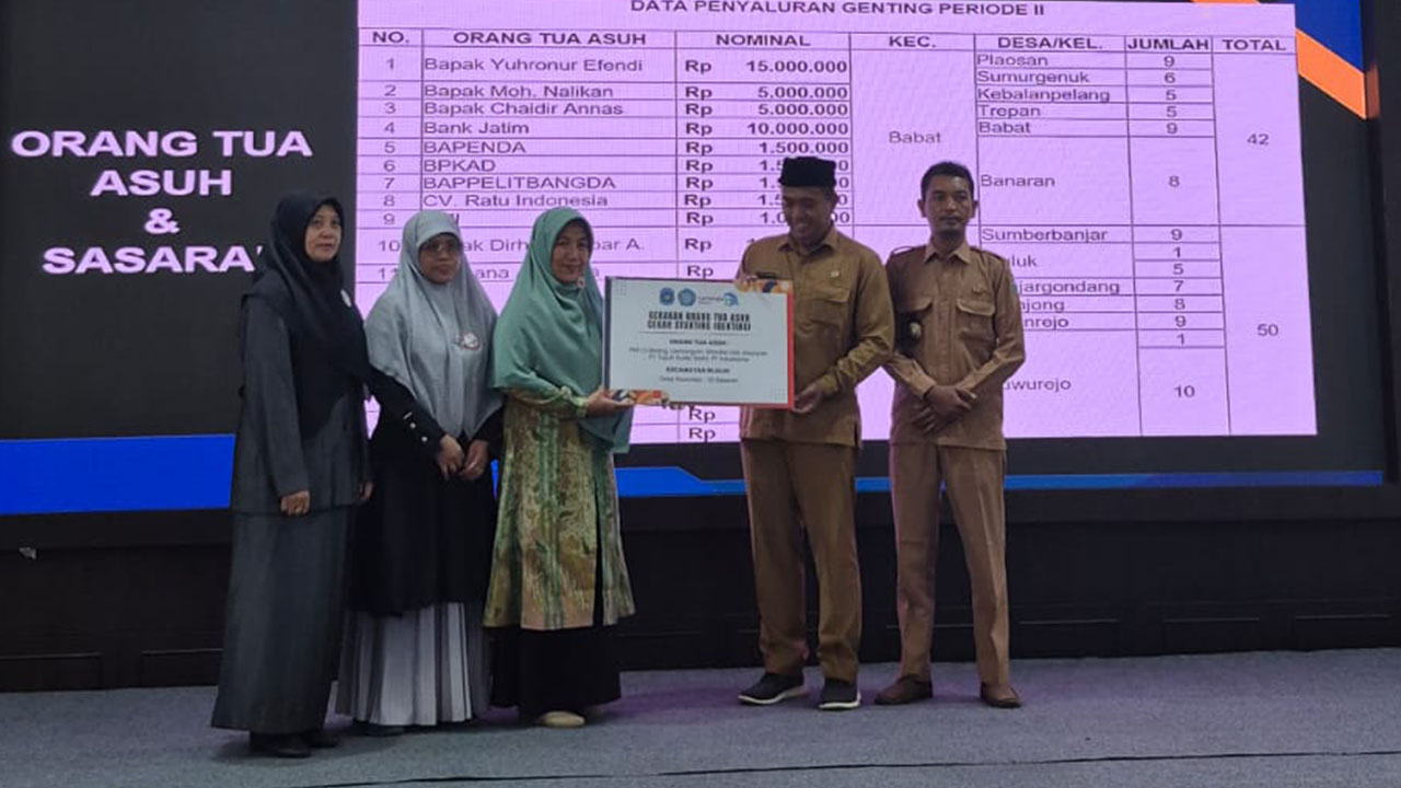 LAMONGAN — Komitmen Pemerintah Kabupaten Lamongan dalam menekan angka stunting terus diwujudkan melalui keberlanjutan Program GENTING (Gerakan Orang Tua Asuh Cegah Stunting). Pada periode kedua pelaksanaannya, program ini kembali menyalurkan bantuan dengan total nilai Rp190.253.000.